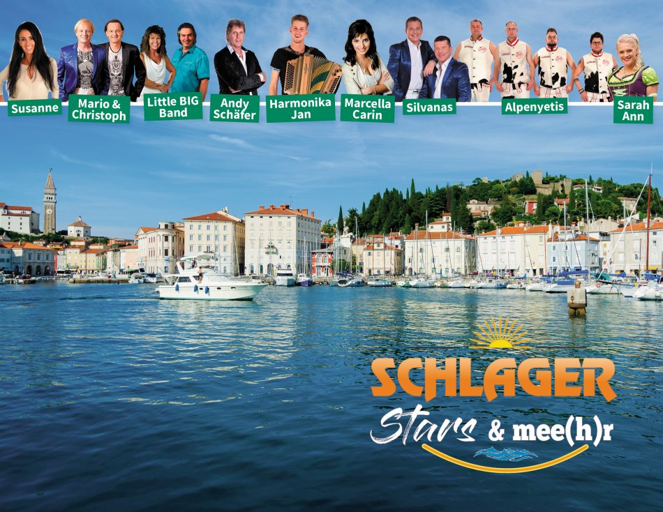 Freuen Sie sich auf eine Woche in Portoroz mit Strand, Sonne und Mee(h)r mit unvergesslichen Open-Air-Konzerten mit namhaften Grössen aus der Schlagerwelt wie: Marcella Carin, Sarah-Ann, Andy Schäfer, Alpenyetis, Harmonika-Jan, Little BIG Band, Mario und Christoph und Silvanas- präsentiert von Susanne. Es warten musikalische Leckerbissen auf Sie. Zwischendurch unternehmen wir herrliche fakultative Ausflüge.