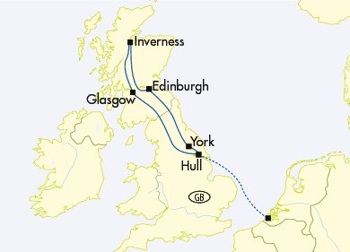 Mit vielen Eindrücken der letzten Tage machen wir uns heute wieder auf die Heimreise. Rückreise durch die atemberaubende Landschaft der Borders mit vielen mächtigen Castels und historischen Stätten, wie z.B. Melrose und Jedburgh. Wir gelangen zum romantischen Städtchen York. Empfehlenswert ist ein Bummel durch die verwinkelten Gassen mit dem sehenswerten Stadtkern, in der die grösste mittelalterliche Kirche Englands zu finden ist. Freuen Sie sich am Abend auf die Fährüberfahrt mit dem komfortablen Fährschiff der P&O nach Rotterdam.