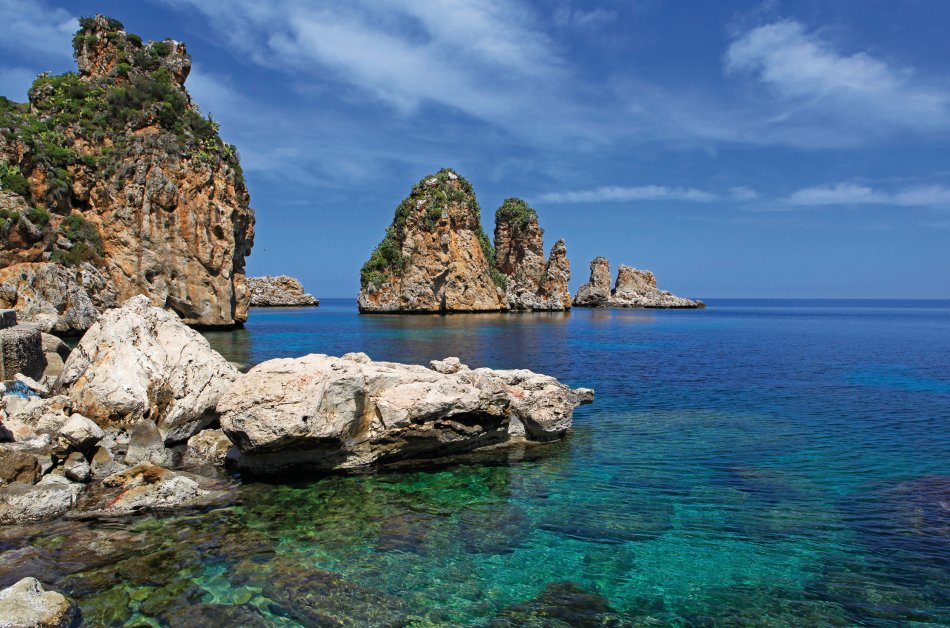 Die eindrucksvolle Insel Sizilien, eingebettet im tiefblauen Mittelmeer, lockt mit einer faszinierenden Mischung aus antiker Geschichte, malerischen Landschaften und mit kulinarischen Genüssen. Wohl kaum eine andere Insel bietet soviel Abwechslung und Farbigkeit wie die Sonneninsel Sizilien. Wer Kunst und Kultur liebt, stolpert hier alle paar Meter in die nächste Attraktion. Sizilien ist mit allen Vorzügen der Natur gesegnet; es gibt Berge, Hügel und vor allem das Meer, das mit seinen unglaublichen Farben, seinen klaren Fluten und dem herrlichen Meeresgrund, die Insel zu einer der schönsten der Erde macht.