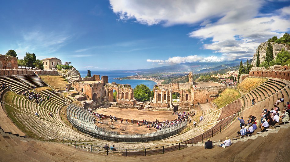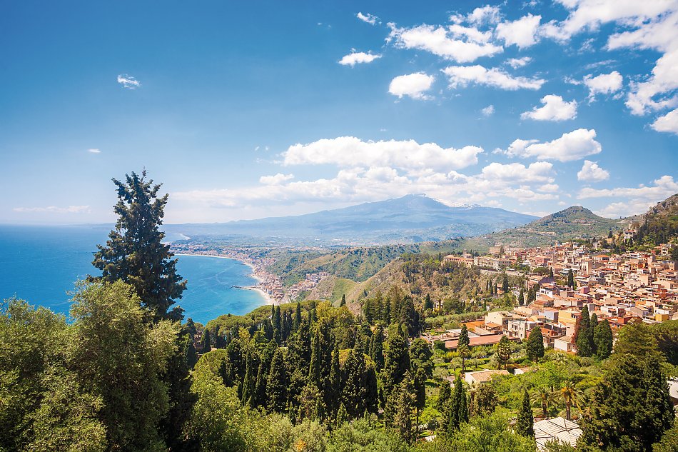 Die heutige Panoramafahrt führt uns zum Ätna bis auf ca. 2'000 Meter. Der Ätna mit seinen 3’340 Metern ist von allen Seiten schön zu bestaunen. Er ist der grösste noch aktive Vulkan Europas. Sie werden fasziniert sein von der vielseitigen Vegetation, den verschiedenen Lavastein-Formationen und der prächtigen Aussicht bis zu der Küste von Catania. Nach diesem Besuch führt uns die Fahrt weiter zu einer Zitronenplantage, wo wir ein typisches Mittagessen geniessen. Anschliessend Fahrt zur Stadt Taormina. Sie liegt erhöht und zählt zu den schönsten Ortschaften der Insel. Von hier haben Sie einen herrlichen Blick auf die Bucht von Giardini Naxos und zum Ätna. Taormina bietet wunderschöne, enge Gassen, edle Geschäfte und typische Restaurants, wo Sie den Nachmittag verbringen können.