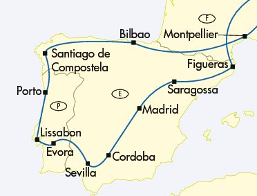 Weiterreise den Gebirgszügen der Pyrenäen entlang in Richtung Toulouse, der ehemaligen Hauptstadt Okzitaniens. Die Fahrt führt uns ins Landesinnere über Pau zur Atlantikküste. Bald erreichen wir die franz./spanische Grenze Irun. Unser heutiges Ziel ist die von grünen Bergen umgebene Hafenstadt Bilbao. Diese liegt an der Biskaya, in der Bucht des Atlantischen Ozeans.